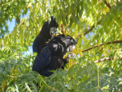 The REAL treat for me, however, was the birdlife. Starting with the tree full of red-tailed black cockatoos we parked under right outside the cafe 😁- out came the camera and lunch suddenly was a secondary consideration. What a treat to be able to be this up close and personal with this lot!! No apologies for the number of photos included here because it is a rareity and they were very co-operative as you will see. The burger was bloody good too!
